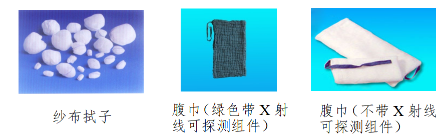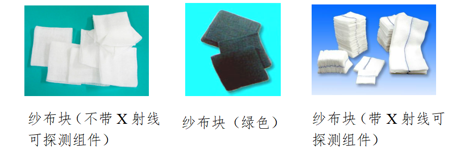 X射线可探测组件:粘于或织于外科纱布敷料上的对X射线有一定阻挡作用的线状或带状材料。