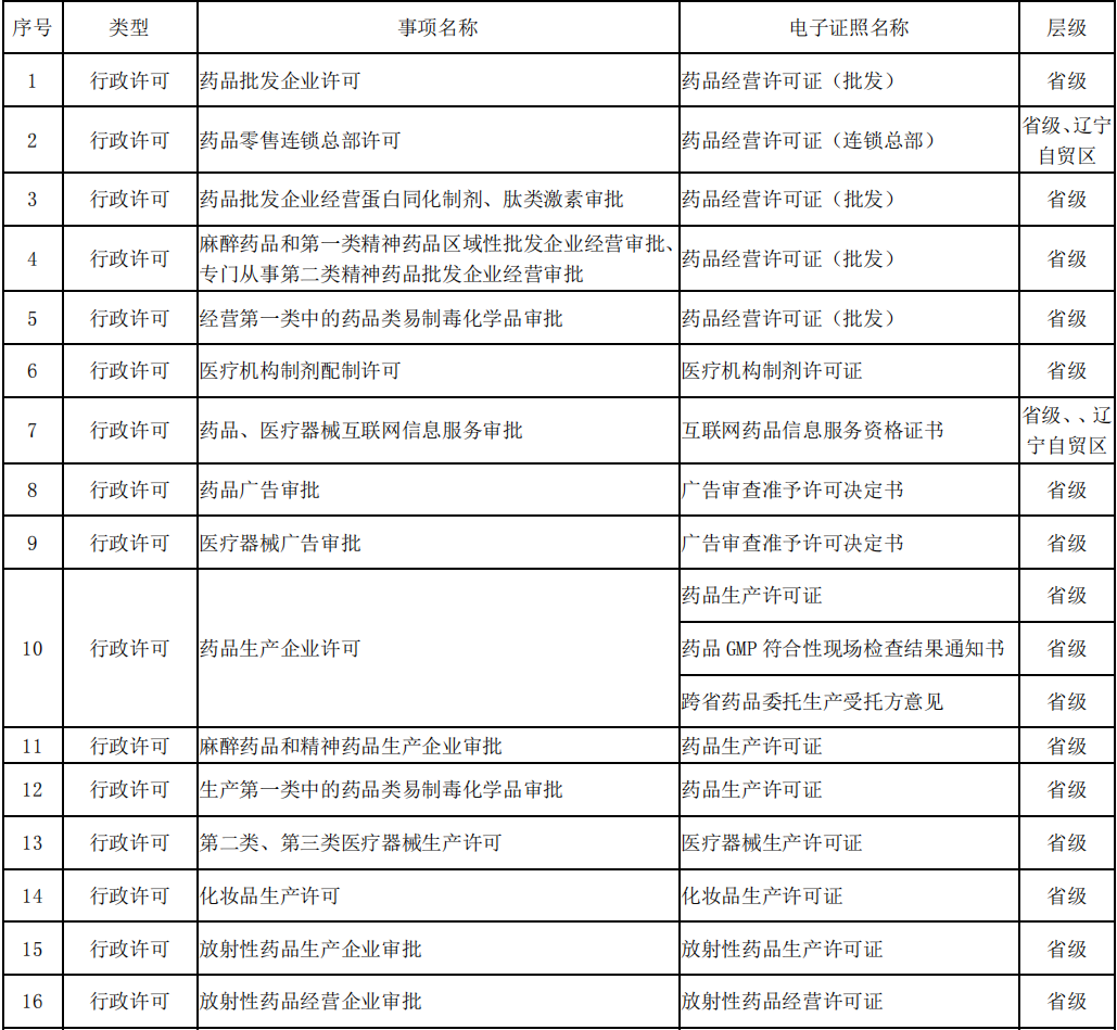 附件:1.辽宁省药品监管领域涉企电子证照事项清单