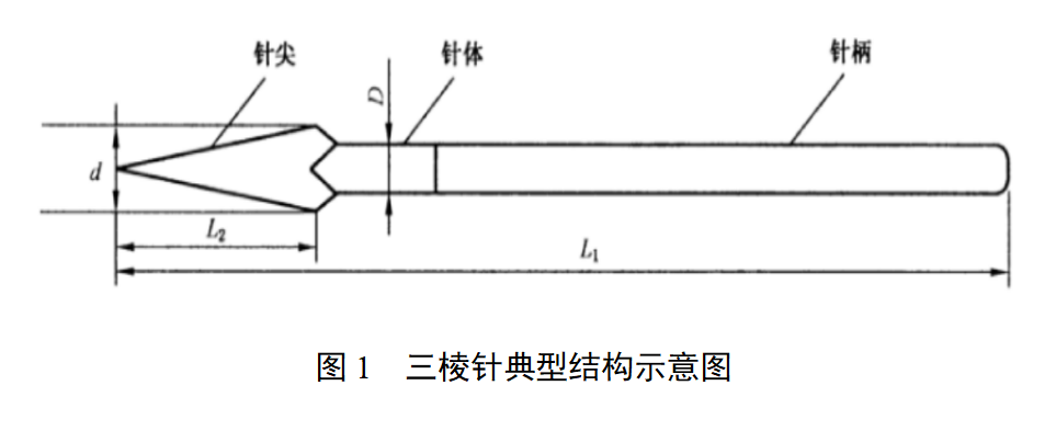 (4)工作原理。一次性使用无菌三棱针产品主要依靠针尖穿刺力刺破人体皮肤。