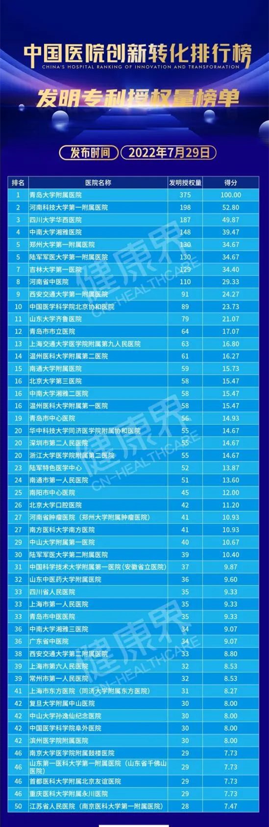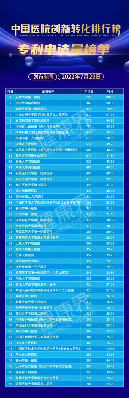 中国医学创新联盟发布中国医院创新转化排行榜TOP100出炉(3/6)