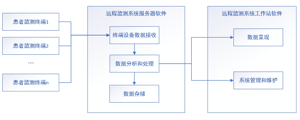 远程监测系统通常由患者监测终端、监测软件和网络设备三个主要部分组成。