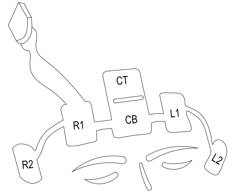 (CB—接地通道电极,鼻子上方的前额正中间; CT—参考通道电极,前额正中心;L1—左侧1通道电极,左侧眉毛正上方;R1—右侧1通道电极;右侧眉毛正上方;L2—左侧2通道电极,左侧太阳穴,介于眼角和发际线之间; R2—右侧2通道电极,右侧太阳穴,介于眼角和发际线之间)