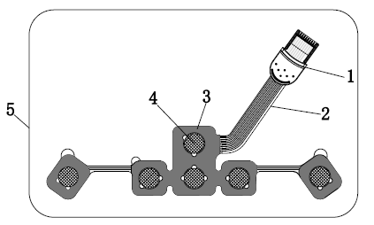 1)连接器,2)导电材料(含布线),3)基衬材料,4)导电介质,5)防粘膜