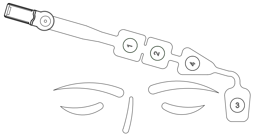 (1或C—接地通道电极,位于前额中心;2或G—参考电极; 3或T—2通道电极,位于太阳穴,介于眼角和发际线之间;4或E—1通道电极,位于眉毛正上方)