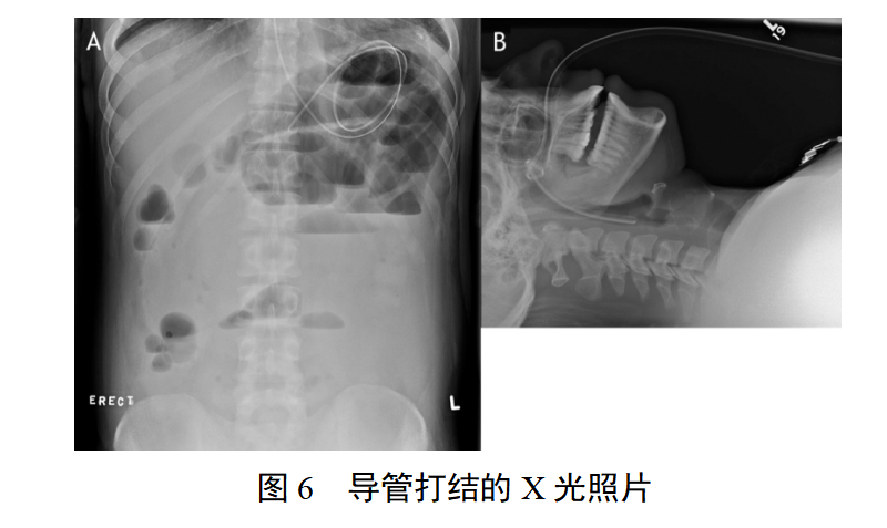 A.导管在患者体内发生卷曲;B.导管拔出时在鼻咽部打结