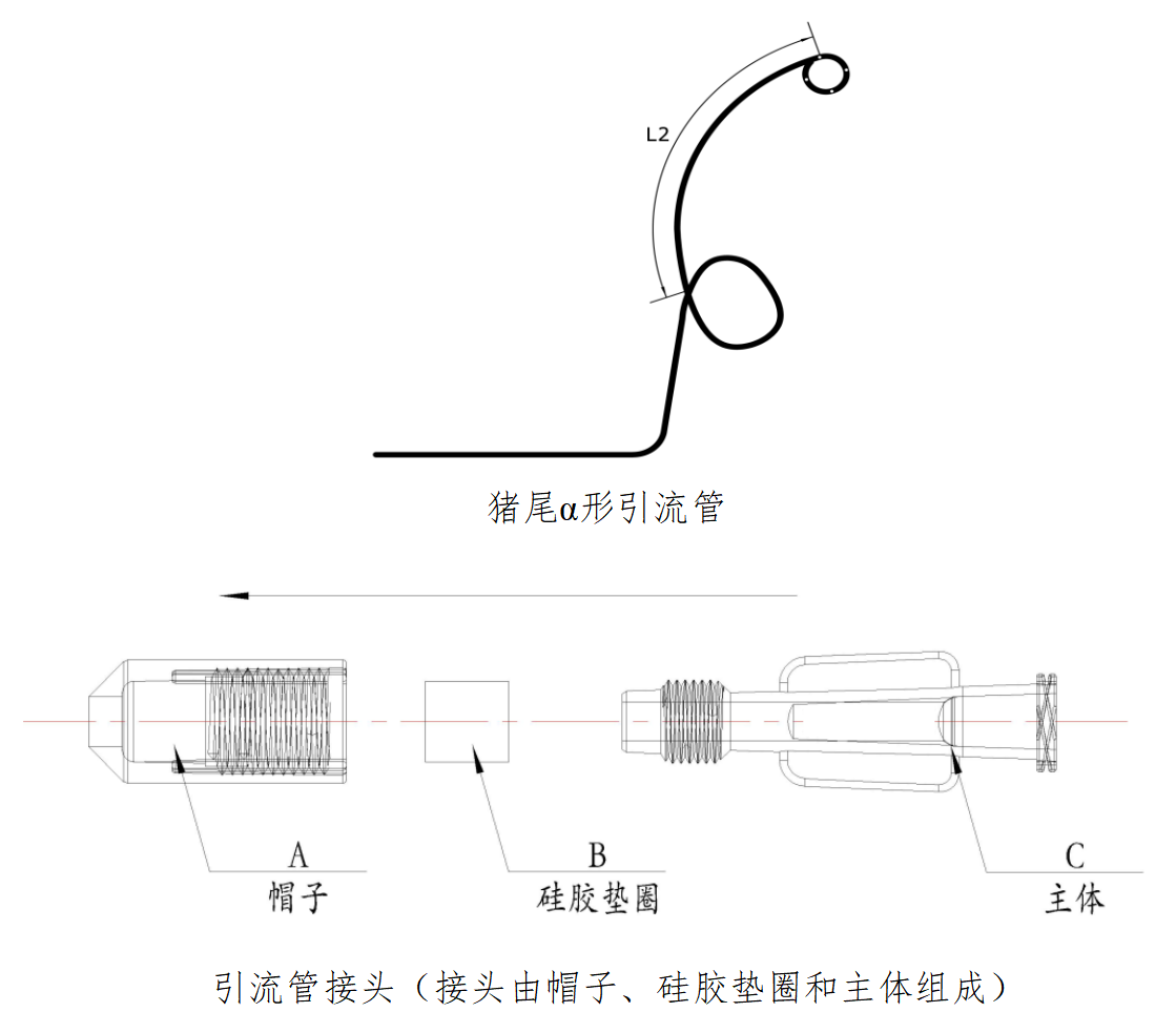 一、产品性能研究资料:产品结构示意图需给出关键部位的结构示意图,如引流管的形状、引流侧孔的数量及排布方式。