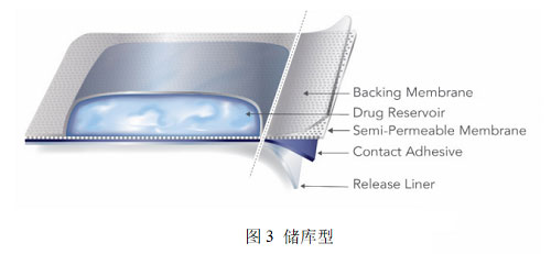 储库型TDS类似地包含各种液体或半固体形式的成分,储库型TDS通过热密封区域将活性物质凝胶保留在背衬膜和微孔膜之间。图3展示了储库型TDS的示意图。由于储库型TDS具有固有的故障模式和安全风险,FDA建议制造商和申请人将重点放在骨架型TDS的开发上[1]。