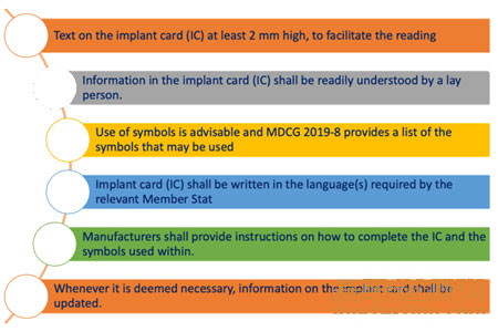 我们将不会详细介绍所有这些具体要求,但很重要的一点是,MDCG(欧盟医疗器械协调小组)发布了一份具体指南MDCG 2019-08,其中说明了与植入卡相关的所有要求。