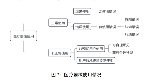 如图2所示,医疗器械使用情况可分为正常使用和非正常使用,其中正常使用是指用户按照说明书要求及常识惯例操作医疗器械,反之即为非正常使用。