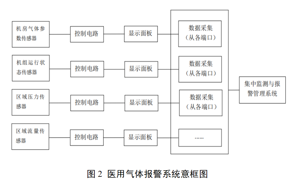 医用气体报警系统通常由传感器(非标配)、显示面板、控制电路和集中监测与报警管理系统(医用气体报警器不包含该组件)组成,是医用供气系统的监控部分。