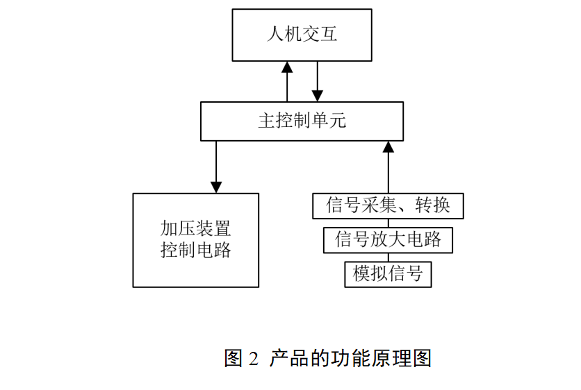 申请人应根据申报产品特点明确加压装置的工作原理、加压装置与压力传感器的连接方式。如申报产品预期用途包含对脉图数据的计算和存储功能,需明确申报产品工作时所依据的脉诊理论来源,列出具有说服力的中医诊断教材或者已发表的论文著作。对于实现预期用途的方法以及数据存储的情况进行描述,并说明采用该方法的原因和理论基础。产品功能原理见图2。