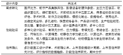 总体来讲,骨组织病损治疗用定制产品的设计开发,仍然以基本的质量管理体系为准绳,但在输入、输出、评审、验证和确认环节呈现一定的交叉重叠,对其定制设计的审评关注点,如表1所概括[21]。然而本文的审评关注点并不等同于设计开发质量体系的内容,也并非技术审评的全部关注点。