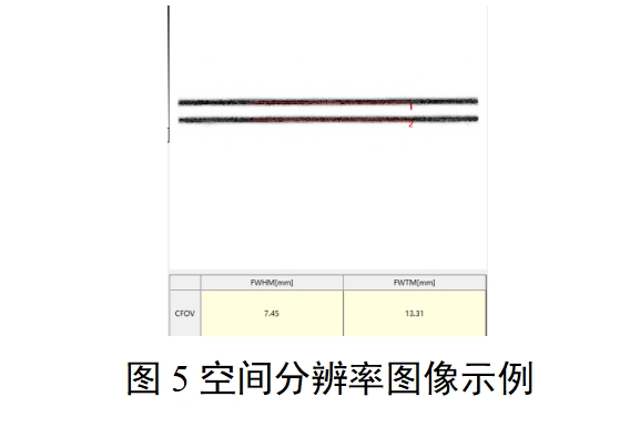 应分别报告对每种准直器,每个探头X、Y方向测试无散射和有散射空间分辨率图像;见图5;