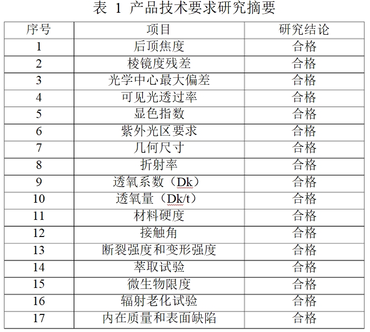申请人选择临床试验路径开展临床评价。临床试验目的为评价申报产品用于矫正屈光不正的安全性和有效性。试验设计为多中心、随机、开放、阳性平行对照、非劣效设计临床试验。对照组为荷兰普罗克尼有限公司生产的硬性透气性角膜接触镜(国械注进20193162218)。计划入选292例双眼度数在:-20.00D~+20.00D 的患者。主要评价指标为戴镜1周时受试者双眼矫正视力均达到5.0(5分视力)(小数视力1.0)的病例百分比。次要评价指标为接触镜矫正视力、接触镜最佳矫正视力、主观可接受性评估。安全性评价指标为包括裸眼视力、屈光状态屈光度检查,主觉验光(裸眼、戴接触镜)和客观验光(裸眼、戴接触镜)、眼部情况包括裂隙灯检查、眼内压检查、角膜地形图检查、角膜曲率检查、角膜厚度、角膜直径、角膜内皮细胞计数、眼底检查和泪膜破裂时间、镜片配适状态评估、镜片状态评估:裂隙灯下的镜片污损情况,包括前表面湿润度、前表面沉淀物、后表面沉淀物,是否有变形、变色、锈斑、划痕、破损等、护理系统性能评价包括有无混浊、杂质、沉淀及对眼睛的刺激症状、不良事件及器械缺陷。临床试验结果显示试验组受试者戴镜有效率为100%,对照组受试者戴镜有效率为98.61%,两组率差(试验组-对照组)及其95%CI为1.39%[-1.33%,4.99%],95%CI下限均大于非劣效界值-10%,试验组非劣效于对照组。次要评价指标及安全性评价指标无组间统计学差异。不良事件发生率两组间无统计学差异。综上,临床评价资料符合目前技术审评要求。