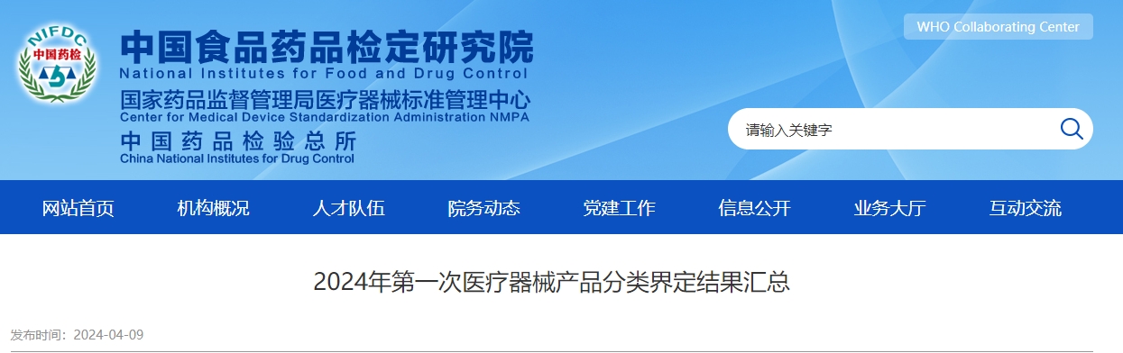 为贯彻落实《国家药监局关于进一步加强和完善医疗器械分类管理工作的意见》(国药监械注〔2023〕16号),进一步提升医疗器械分类管理服务水平,现公开2024年第一次医疗器械产品分类界定结果汇总。