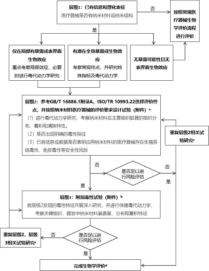a.现有GB/T 16886.1 附录A,以及ISO/TR 10993.22(等同转化为GB/Z 16886.22)所提供的框架用于应用纳米材料的医疗器械的生物相容性/毒理学评价是有限的,需要结合其纳米特性和暴露特征考虑增加评价终点。