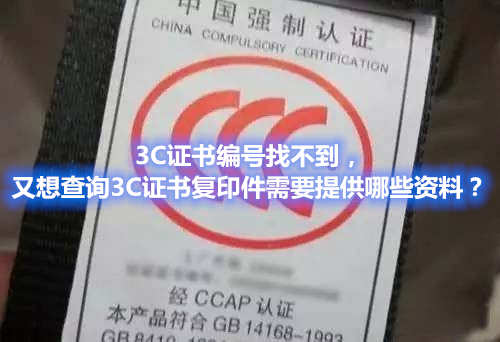 查询3C证书复印件一般情况下是用3C证书编号来查询复印件,也有特殊情况如证书丢失,没有电子版导致3C证书编号无法提供,本文分享不能提供3C证书编号,又想查询3C证书复印件所需提供资料如下: