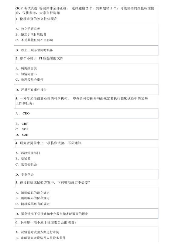 本篇文章一份真实GCP考试真题,由公司临床部门同事分享,有需求的文末下载。
