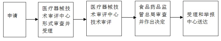 申请人按照本《指南》第八条要求,向国家食品药品监督管理总局行政受理服务大厅提出申请,受理人员根据申报事项按照《关于公布医疗器械注册申报资料要求和批准证明文件格式的公告》(2014年第43号)、《关于印发境内第三类和进口医疗器械注册审批操作规范》、《关于公布体外诊断试剂注册申报资料要求和批准证明文件格式的公告》(2014年第44号)的要求对申报资料进行形式审查。