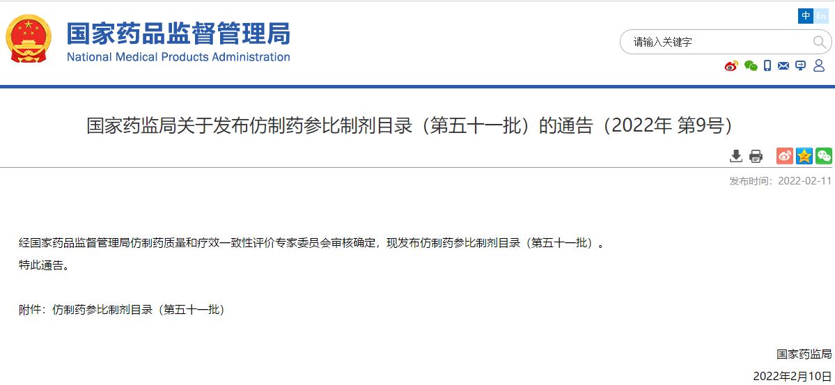 经国家药品监督管理局仿制药质量和疗效一致性评价专家委员会审核确定,现发布仿制药参比制剂目录(第五十一批)。