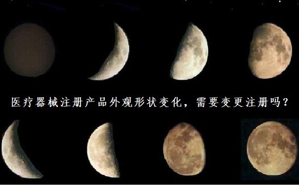 选月相变化这个图做封面,是想说说变与不变,及分享一个有关医疗器械注册产品外形状变化相关的问题。当医疗器械注册产品仅外观形状发生变化,需要进行医疗器械变更注册吗?注意,这不是一个能用肯定或否定直接回答的问题。