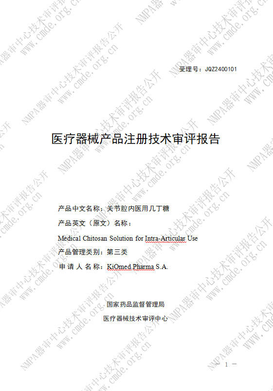 一、产品概述(一)产品结构及组成 该产品为预灌封于注射器中的几丁糖衍生物溶液。几丁糖衍生物溶液包含羧甲基几丁糖衍生物、山梨醇、磷酸氢二钠、磷酸二氢钾、注射用水,其中