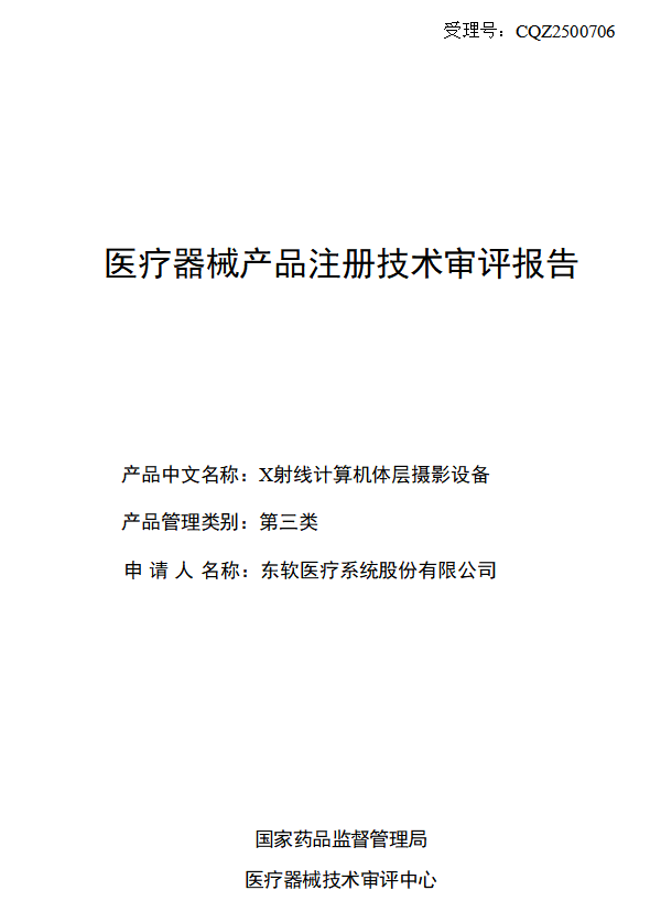 一、申请人名称 东软医疗系统股份有限公司二、申请人住所 辽宁省沈阳市浑南区创新路177-1 号三、生产地址 辽宁省沈阳市浑南区创新路177-4 号技术审评概述一、产品