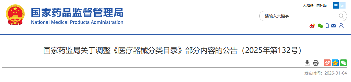 按照《医疗器械监督管理条例》《医疗器械分类目录动态调整工作程序》有关要求,结合医疗器械产业发展和监管工作实际,经研究,国家药监局决定对《医疗器械分类目录》部分内容