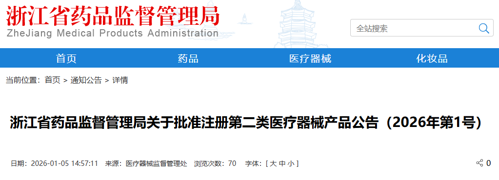 2025年12月,浙江省药品监督管理局共批准注册第二类医疗器械产品99个,其中有源类49个,无源类37个,体外诊断试剂13个(具体产品见附件)。 按照注册申请人所在辖区分析,批准