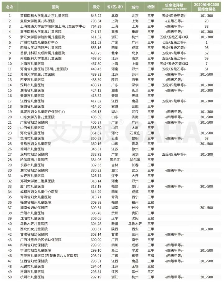 2021年儿童医院50强根据医疗技术、资源配置、医院运营和诚信服务4个一级指标对儿童医院进行排名,推出儿童医院竞争力榜单——“2021届儿童医院50强”。