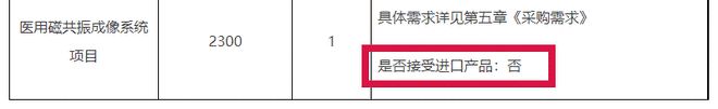 其中,中国医学院肿瘤医院预算2300万采购医用磁共振成像系统,明确表示不接受进口产品。