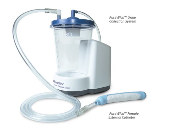 总部位于新泽西州富兰克林湖的 BD 设计的导管将尿液从患者身上“吸走”并进入指定的收集罐——PureWick 尿液收集系统——以管理女性尿失禁。