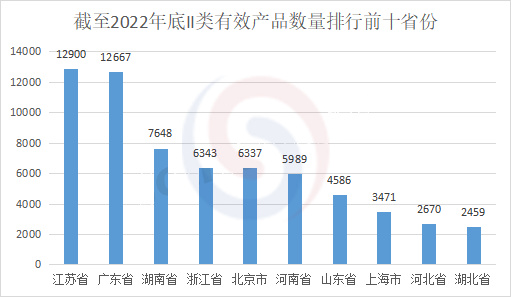 北京市Ⅱ类有效产品数量6337件,全国排名第一