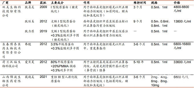 ▲已获NMPA批准上市的注射类胶原蛋白产品(图源:招商证劵)