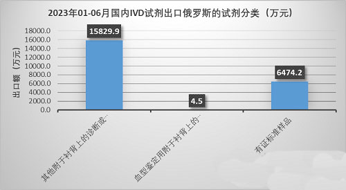 出口俄罗斯的主要分为3类,其中其他附于衬背上的诊断或实验用试剂及不论是否附于衬背上的配制试剂占比约71%,有证标准样品约占29%。