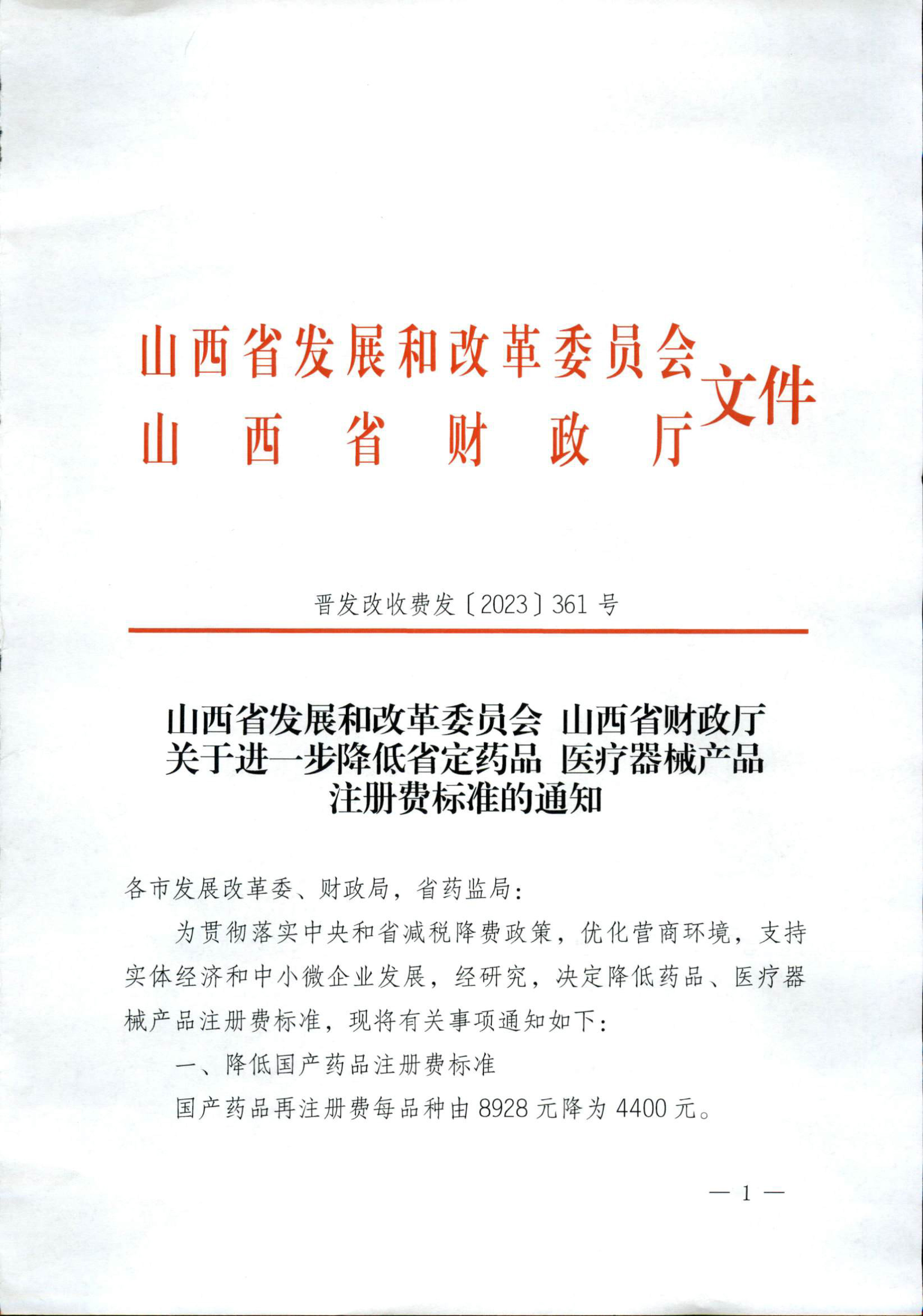 9月20日,山西省发展和改革委员会发布《关于进一步降低省定药品、医疗器械产品注册收费标准的通知》,主要内容如下: