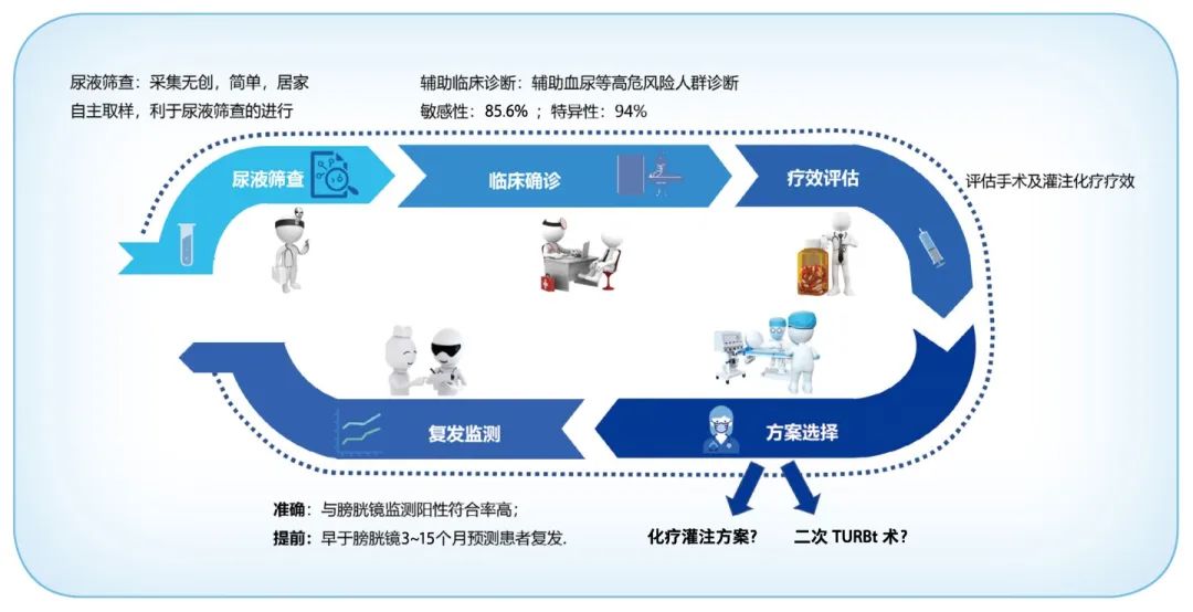 使用尿液全癌标志物甲基化检测代替膀胱镜检查可能是一种既提高复发监测效率又降低医疗保健花费的临床策略。未来在尿液全癌标志物甲基化检测为阴性的情况下,膀胱镜检查可以安全地推迟,从而有效提高患者的依从性,减轻患者和卫生保健系统的经济负担;在尿液全癌标志物甲基化检测为阳性的情况下,应尽快明确复发灶情况并及早给予有效的治疗。