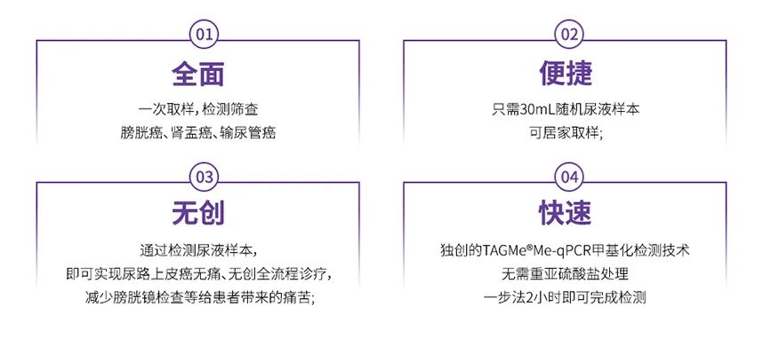 该产品成为全球首个获得美国FDA突破性医疗器械认定的自主研发的基于全癌标志物的尿路上皮癌(膀胱癌、输尿管癌和肾盂癌)尿液同步检测产品。