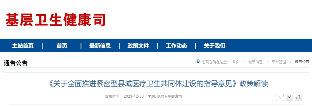 近日,经国务院同意,国家卫生健康委、中央编办、国家发展改革委、财政部、人力资源社会保障部、农业农村部、国家医保局、国家中医药局、国家疾控局、国家药监局10个部门联合印发了《关于全面推进紧密型县域医疗卫生共同体建设的指导意见》(以下简称《指导意见》),文件印发至各省、自治区、直辖市人民政府,新疆生产建设兵团,国务院各部委、各直属机构。现对《指导意见》有关情况解读如下。