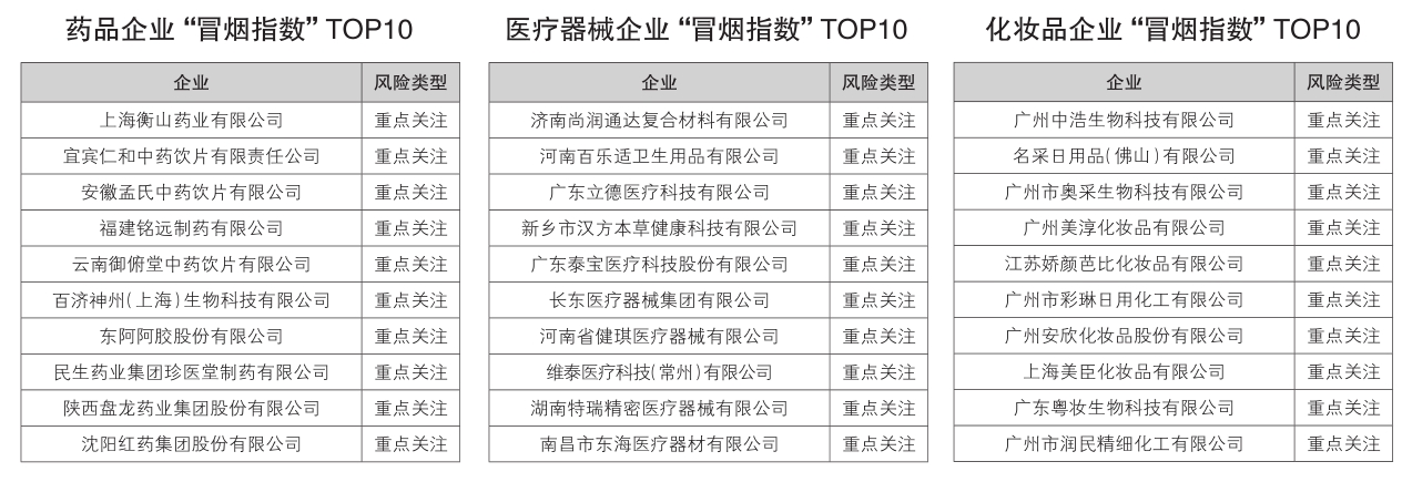本期“两品一械”企业“冒烟指数”监测时段为2024年1月1日至31日。由于监测平台数据滚动更新,“冒烟指数”将动态更新。