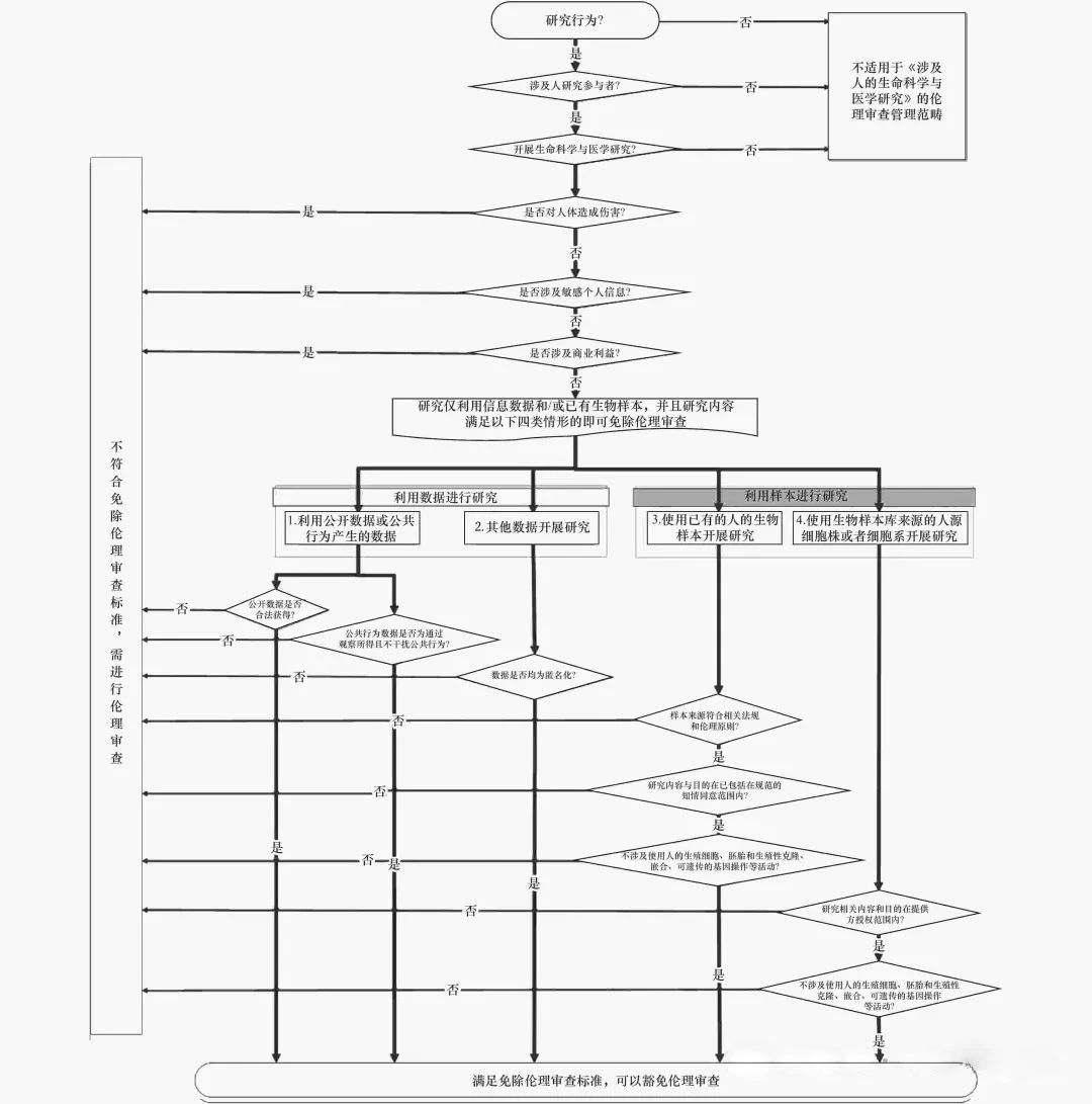 “两大范畴”内的生命科学和医学研究,只有同时满足前文提及的“三项前提”基础上,方可进行下一步评估是否符合免除伦理审查的适用情形。