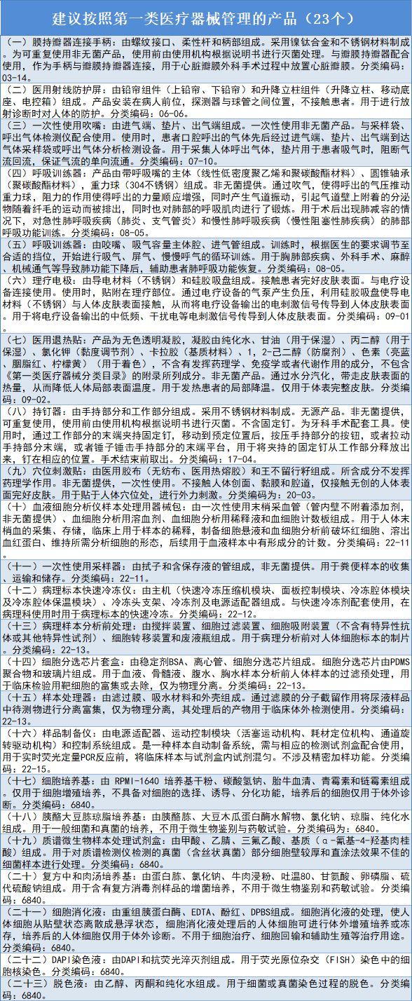 本次汇总的医疗器械产品分类界定结果共223个,其中: