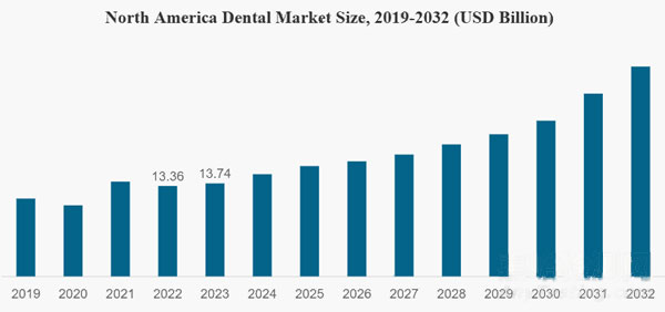 根据《财富》信息显示,全球牙科市场在2023年的规模达到了354亿美元,预计从2024年的389.5亿美元持续增长至2032年的953.7亿美元,期间复合年增长率(CAGR)预计为11.8%。这一市场涵盖了用于诊断、预防和治疗各类口腔疾病(包括牙周病、龈炎、错颌畸形和龋齿)的器械与耗材。市场上琳琅满目的产品类别包括假体、植入物、根管治疗用品、牙周病治疗用品及牙齿美白产品等。尤其是根管治疗和牙周病治疗产品,因其几乎无痛的治疗过程和相对经济的成本,近年来受到广泛欢迎,显著推动了市场的接纳度。