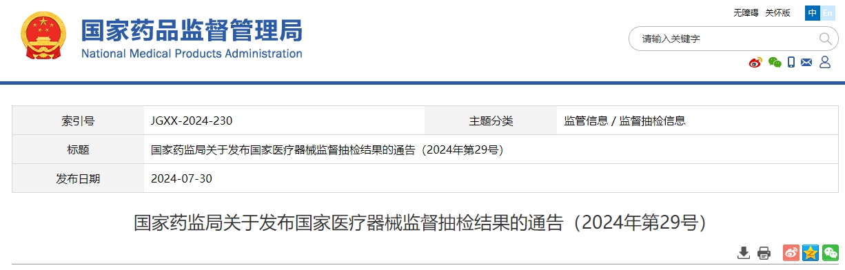 对抽检发现的不符合标准规定产品,国家药品监督管理局已要求相关企业所在地省级药品监督管理部门按照《医疗器械监督管理条例》《医疗器械生产监督管理办法》《医疗器械召回管理办法》等要求,及时作出行政处理决定并向社会公布。省级药品监督管理部门要督促企业对抽检不符合标准规定产品进行风险评估,根据医疗器械缺陷的严重程度确定召回级别,主动召回产品并公开召回信息;督促企业尽快查明产品不合格原因,制定整改措施并按期整改到位。