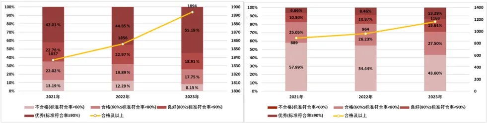 《函》中指出,2023年度参评的2062家县医院中,有1894家(占比91.85%)符合基本标准,其中1163家(占比56.40%)符合推荐标准,较2022年度分别增加38家、199家。