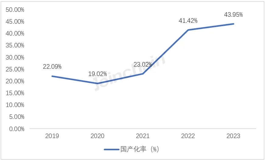 在优先采购国产设备的政策以及国产品牌技术突破的影响下,血液透析设备国产化率从2019年的22.09%迅速提升至2023年的43.95%,上升了21.86%。