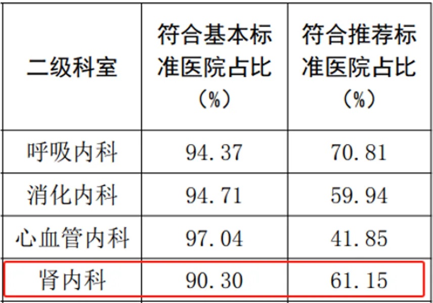 然而,《函》中着重强调,目前仍有286家县医院尚未配置血液透析机。同时,根据公布的县医院各科室服务能力符合情况来看,符合基本标准医院占比为90.30%,符合推荐标准医院占比仅为61.15%,县域医院血透机市场仍有一片潜在的市场蓝海。