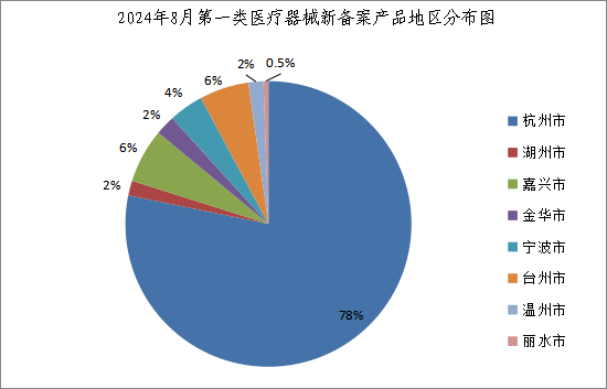 2024年8月,浙江省内各市市场监督管理局共新备案第一类医疗器械产品179个,其中有源类7个,无源类73个,体外诊断试剂99个(具体产品见附件)。
