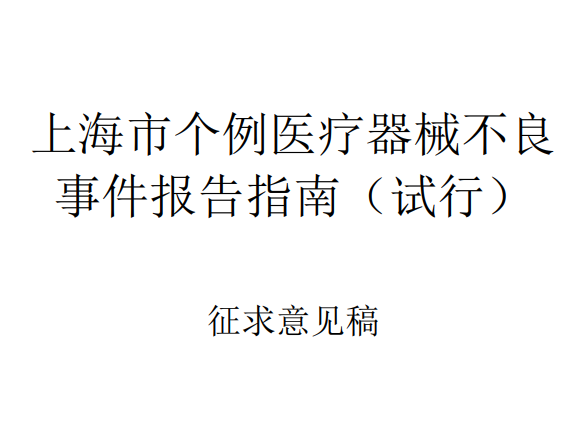 1.《上海市个例医疗器械不良事件报告指南(试行)(征求意见稿)》
