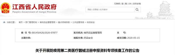 为切实落实“四个最严”的要求,从源头上保障医疗器械产品安全有效,江西省药品监督管理局决定对已申报的防疫用第二类医疗器械注册待审产品开展注册资料真实性专项核查。现将有关事宜公告如下。